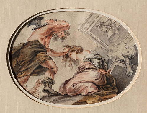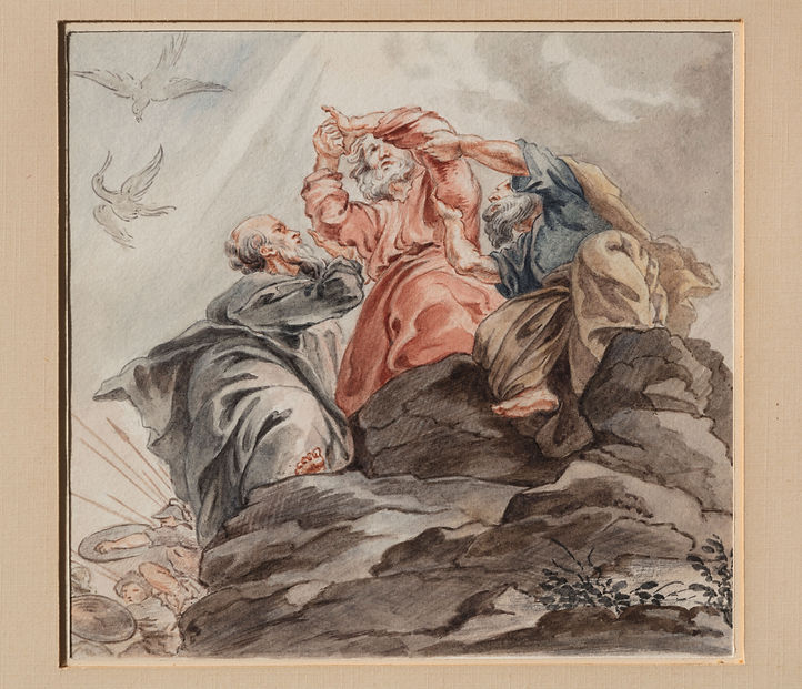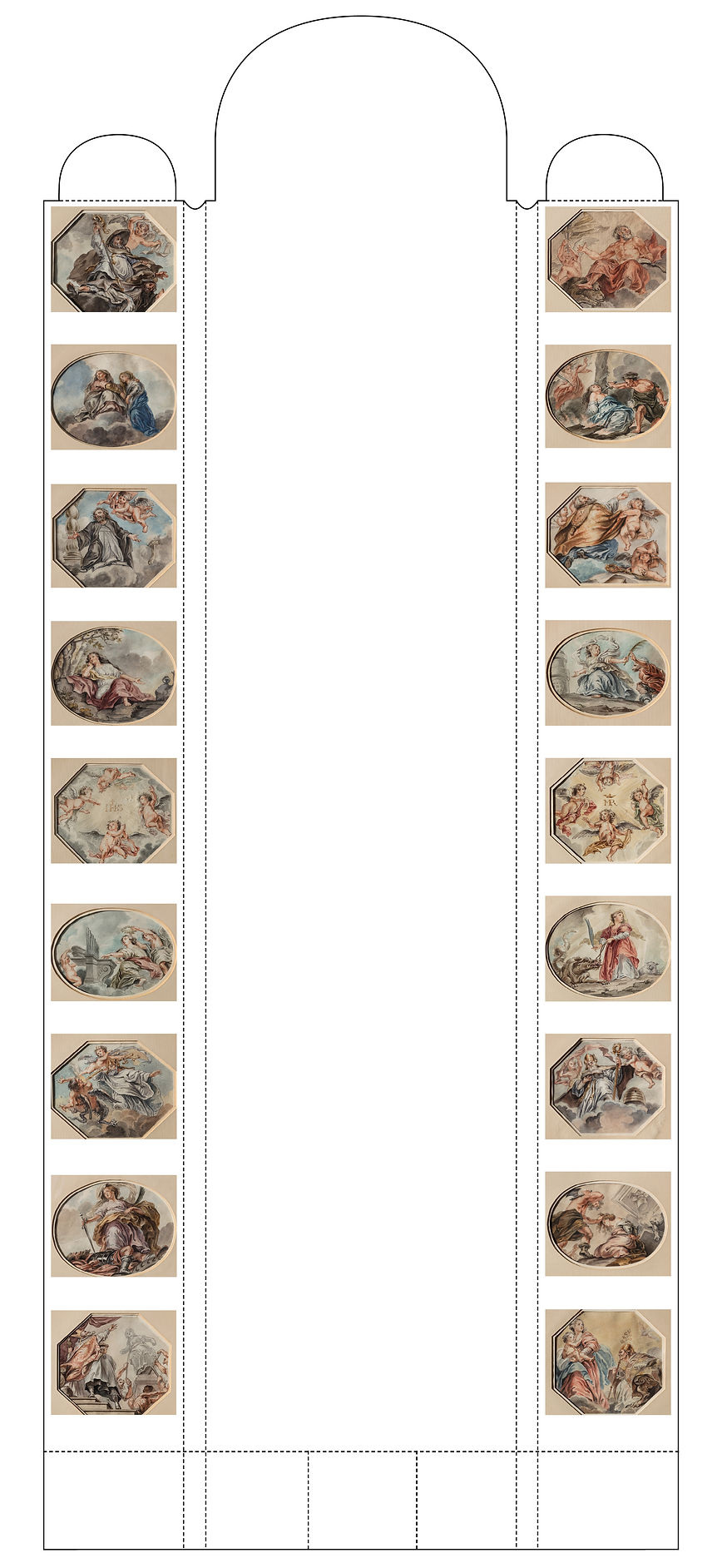 du Ciel, Moïse en prière, ou encore la Tentation du Christ (triomphant du diable qui lui présente des pierres pour les transformer en pain), auxquelles répondent les scènes de l’étage inférieur où les saints combattent les ennemis de la foi chrétienne. C’est le cas de saint Athanase vainqueur de l’hérétique Arius, de Grégoire de Nazianze chassant la figure démoniaque des cieux, de sainte Catherine triomphante devant l’empereur Maximilien, ou encore des autres martyres féminines surmontant la persécution d’oppresseurs païens. Dans tous ces cas, il s’agit d’illustrer le triomphe chrétien sur le mal ou le paganisme, ce qui revient pour les jésuites à illustrer le triomphe du christianisme sur les protestants.