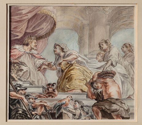 Parmi la binarité des associations typologiques, certaines paires étaient déjà bien connues et commentées dans la tradition exégétique depuis la fin du Moyen âge, voire déjà dans les écrits des Pères de l’Église. C’est le cas de Salomon et la reine de Saba mis en parallèle avec L’Adoration des Mages : la visite de la reine de Saba, qui venait de l’Est portant des cadeaux pour le roi Salomon, préfigure ainsi les offrandes apportées au Christ Enfant par les rois – le trône de Salomon signifiant qui plus est la Vierge Marie, sur les genoux de laquelle était assis Jésus.