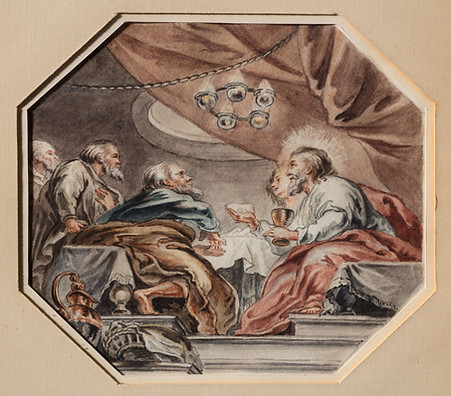 Un autre exemple fréquent de ce procédé typologique consistait à associer Melchizédec offrant le pain et le vin à Abraham avec la Dernière Cène, qui illustrent tous deux des offrandes de pain – scènes à connotation eucharistique. Dans la dernière Cène, Rubens choisit d’ailleurs d’insister sur le moment où le Christ offre le pain à saint Pierre au lieu de montrer le Christ bénissant le pain, comme c’est plus fréquemment le cas dans la tradition iconographique, afin de rendre l’association plus parlante. Des répétitions de dispositifs formels permettent aux fidèles d’associer ces scènes visuellement : outre les gestes similaires des deux principaux protagonistes, Rubens a imaginé un cadrage identique à l’avant-plan composé de marches d’escalier qui permet au fidèle de pénétrer dans la scène, et a disposé à l’avant-plan des deux scènes un panier de pain et des jarres de vin pour souligner la dimension eucharistique.