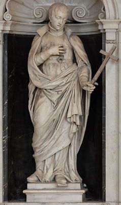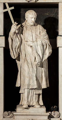 Entourant ce retable monumental, le chœur est recouvert sur toute sa surface de marbres colorés. Sur la travée triomphale qui referme le chœur, quatre niches accueillent les statues des saints jésuites, réalisées en 1656-1657, seulement 35 ans après l’achèvement de l’église (sans doute en raison des difficultés financières que connut la maison professe) : Ignace de Loyola au nord et François-Xavier au sud du premier niveau (réalisés par Artus I Quellin), surmontés de François de Borgia, reconnaissable au crâne, et de Louis de Gonzague, patron de la jeunesse (réalisés par Hubert van den Eynde). Encadrant le retable, ces saints jésuites signifient la mission apostolique, ou l’Église militante, tandis que le sommet du retable figure, par la Vierge représentée comme Reine du ciel (Regina Caeli) ou Reine des anges (Regina Angelorum), l’Église triomphante.